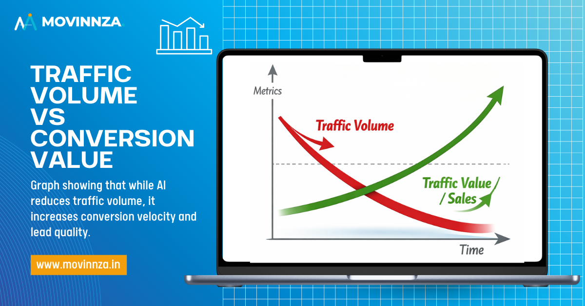 At Movinnza, we explain to our worried clients how this is a blessing in disguise. While the traffic volume may have gone down in 2026, the conversion velocity and traffic value have increased significantly.